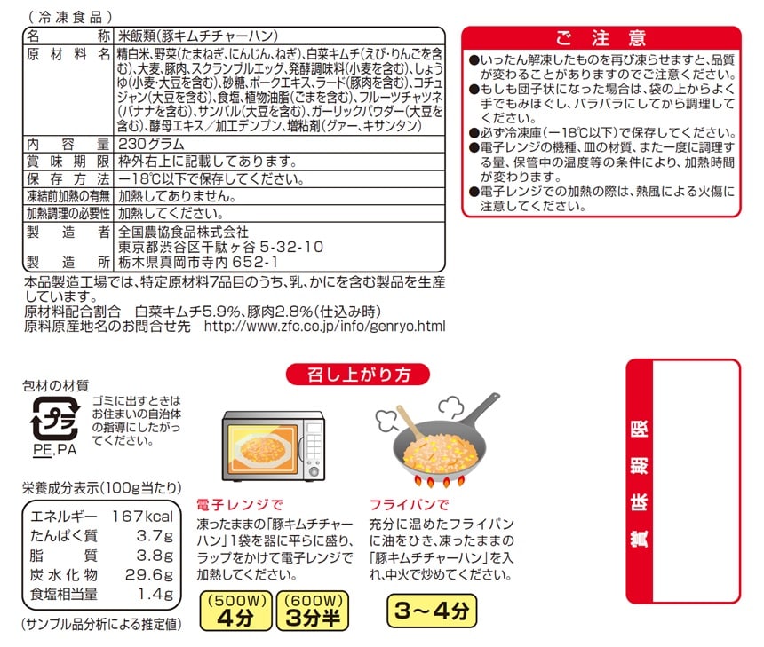 [24食]全国農協食品 豚キムチチャーハン 230g | 辛味とうまみが食欲をそそる豚キムチチャーハンです