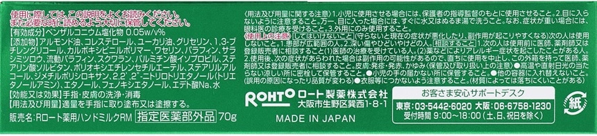 保湿成分を配合した手指消毒用ハンドミルク。外出先にもこれ1本!有効成分「ベンザルコニウム塩化物」で手指を消毒。