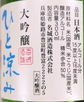 - ・ひと涼みしぼりたて大吟醸 720ml×1本