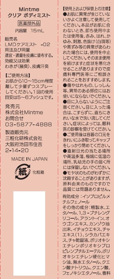 - 【医薬部外品】Mintme クリアボディミスト 15ml