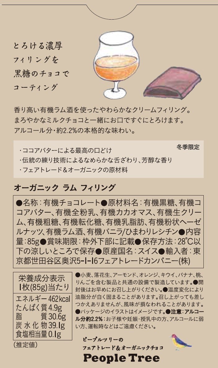 - フェアトレードチョコ オーガニック ラム フィリング 85g
