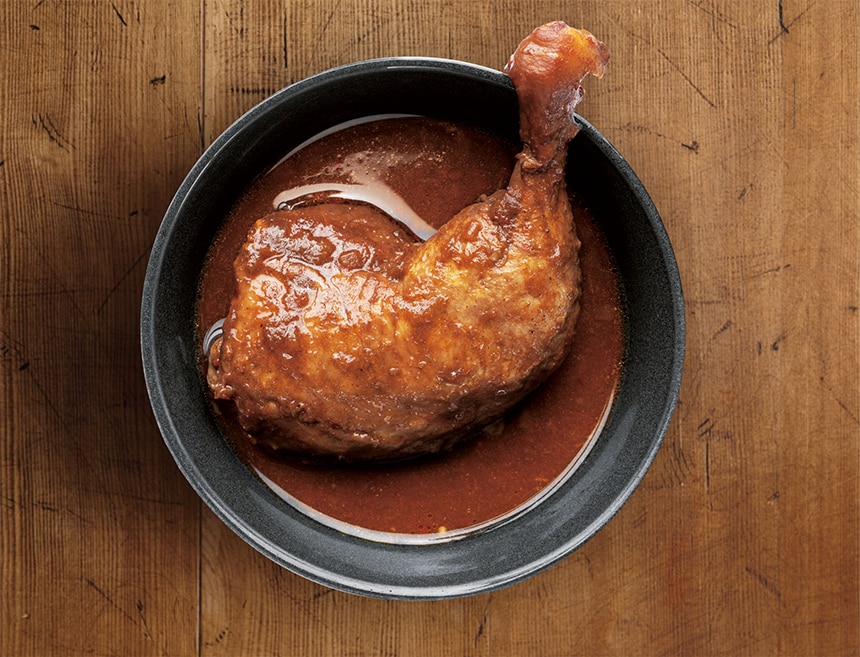 北海道産トマトで味付けしたスープカレーに柔らかチキンレッグを丸ごとトッピングしました。