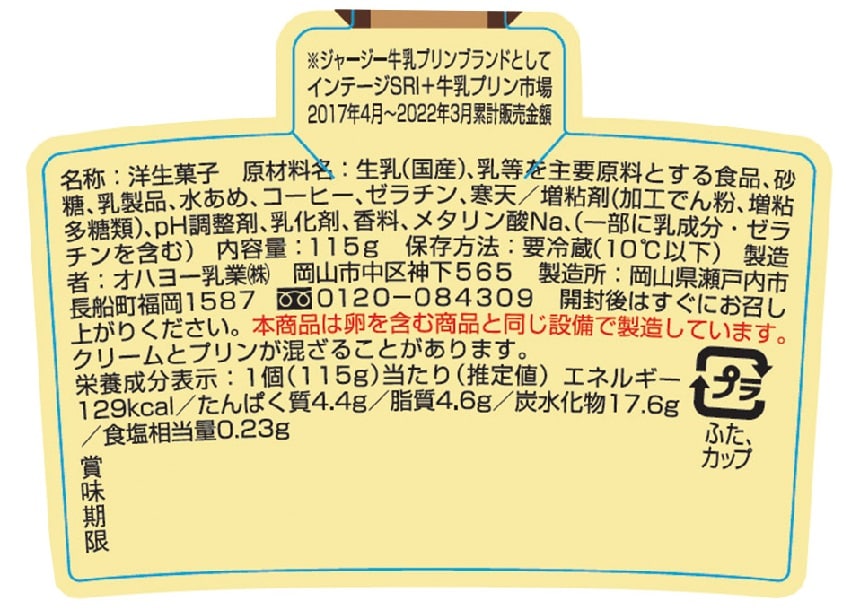 - [冷蔵]オハヨー ジャージー牛乳プリン カフェラテ 115g×5個
