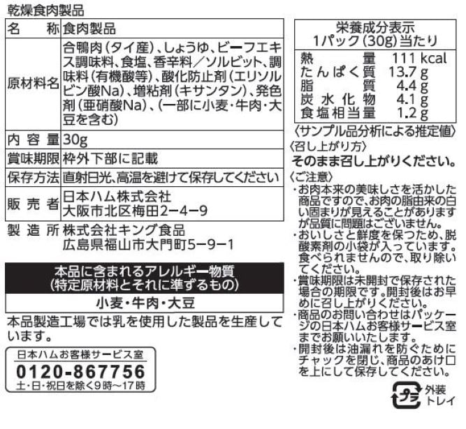 [15個]日本ハム DRY MEATS 合鴨 醬油味 30g