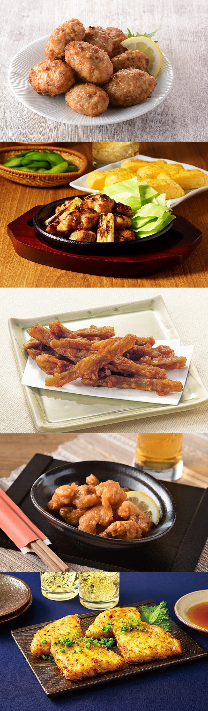 [冷凍]【5種計5袋】レンジで簡単!居酒屋メニューセット(なんこつつくね/若鶏と白ネギの炭火焼/ごぼうスナック/イカ軟骨ピリ辛揚げ/山芋とろーり焼)