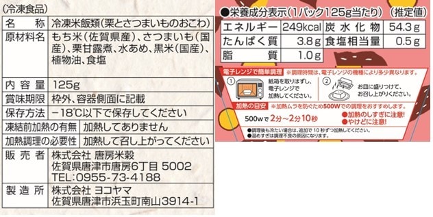 鹿児島県産「黒米」入りのおこわはほんのり塩味、栗とさつまいものほどよい甘さがよく合います。