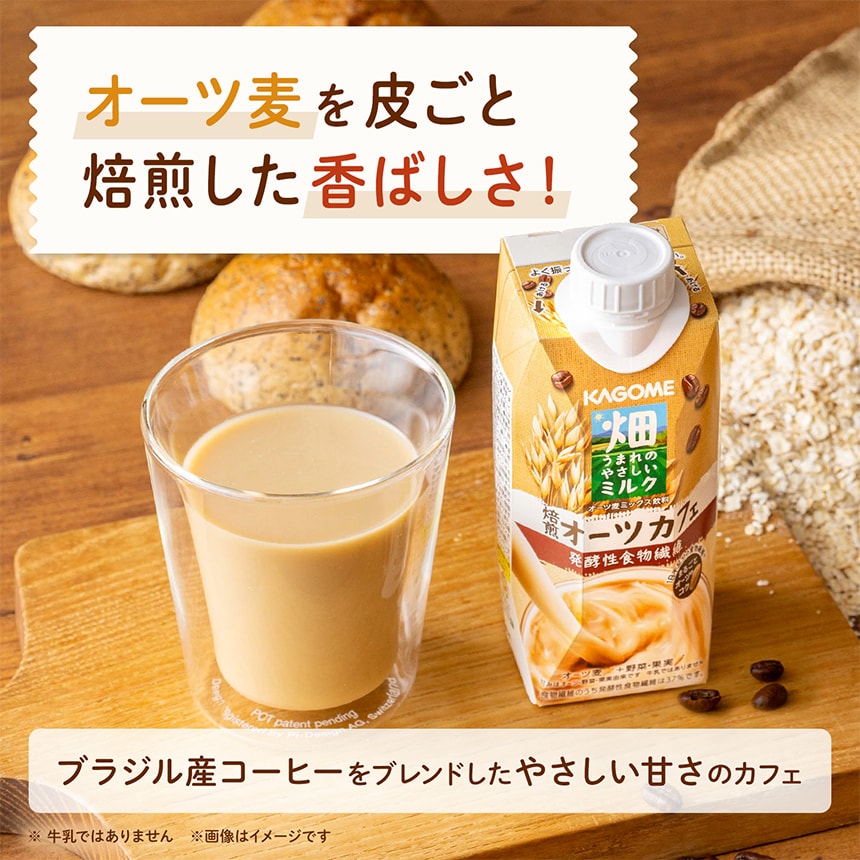 [36本]カゴメ 畑うまれのやさしいミルク 焙煎オーツカフェ 330ml | オーツ麦の香ばしさが楽しめる植物性ミルクとブラジル産コーヒーをブレンドしたやさしい甘さのカフェ。