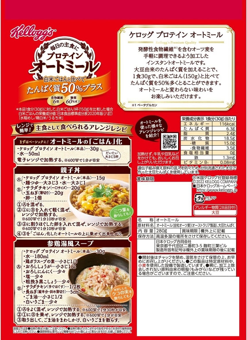 [12袋]日本ケロッグ プロテインオートミール 280g | オートミールに大豆由来のたんぱく質フレークをプラス
