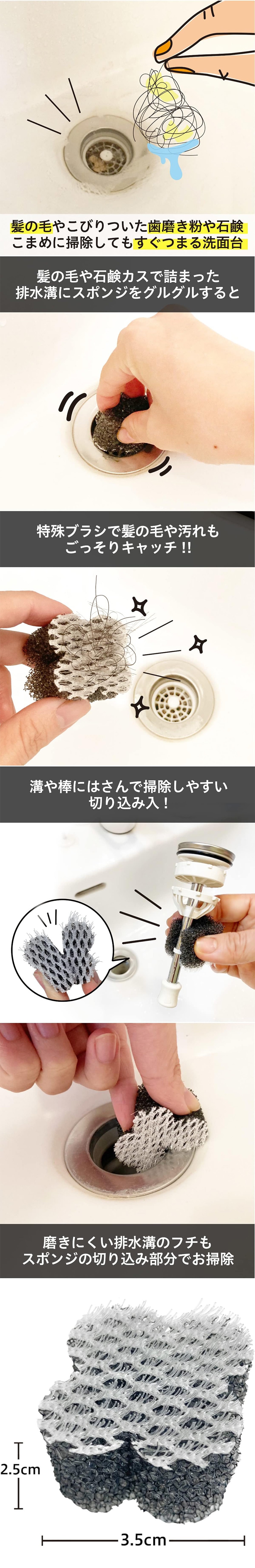 [32袋]ケミカルジャパン 洗面台の髪と汚れを取るスポンジ 10個 | 特殊なブラシがついたスポンジが髪の毛を絡めとります