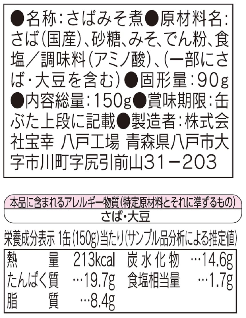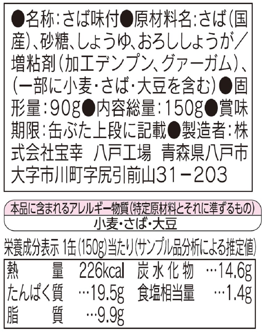 - 宝幸 国内産さば缶(さば水煮 150g / さば味噌煮 150g / さば味付 150g)