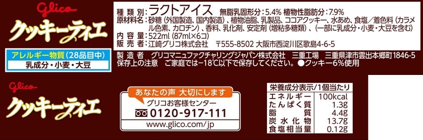 ※アイスクリーム類は、-18度以下での冷凍保存の状態では、品質の劣化が極めて小さい食品となりますので、賞味期限の設定がされておりません。