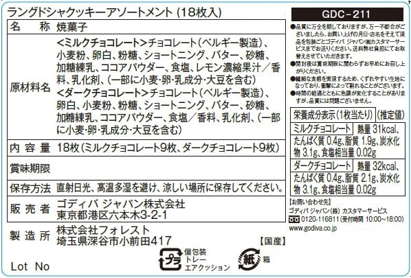 [4箱]ゴディバジャパン ラングドシャクッキーアソートメント 18枚入 | チョコレートを練りこみ軽やかに焼き上げたラングドシャでチョコレートをサンド。
