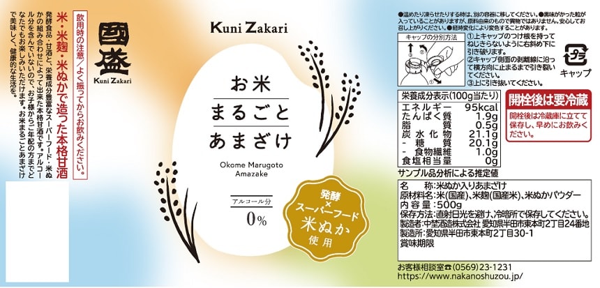 [6本]中埜酒造 國盛 お米まるごとあまざけ 500g | 米、米こうじ、米ぬかで造った本格甘酒です