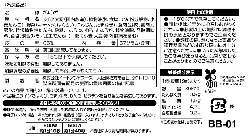 [計288個]イートアンドフーズ 大阪王将水餃子 57g(19g×3個)×96袋 | 国産具材を使用。皮は弾力のある「ぷるもち皮」でスープが染み込みやすく、煮込んでも荷崩れしにくい水餃子です。