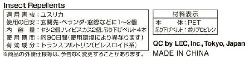 [18箱]レック バルサン 虫こないもん 吊り下げタイプ ヤシ・ハイビスカス 効果90日 電池不使用 4個入 | いや~な虫の侵入をブロック。虫が入ってきそうな場所に吊るすだけ