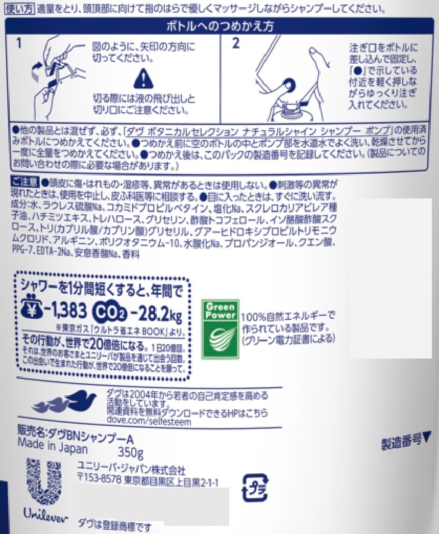 - ダヴ ボタニカルセレクション ナチュラルシャイン シャンプー つめかえ用 350g