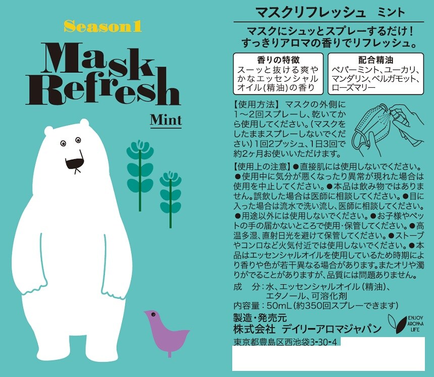 [3個]デイリーアロマジャパン マスクリフレッシュ ミント 50ml | マスクにシュ!とひと吹き。