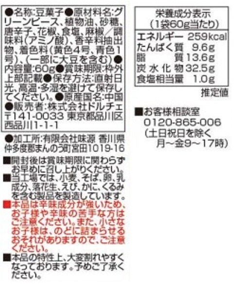 [20袋]ドルチェ 麻辣青豆 60g | シビれる花椒のうまさ!おつまみにピッタリです!
