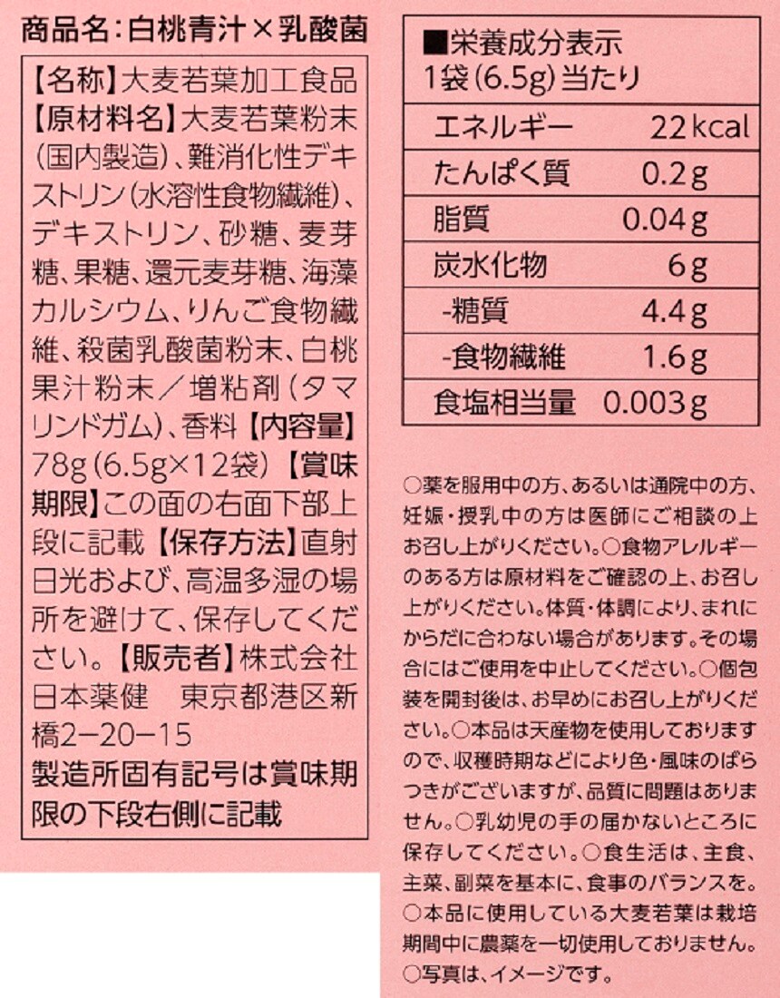 - 白桃青汁×乳酸菌 78g(12袋入)