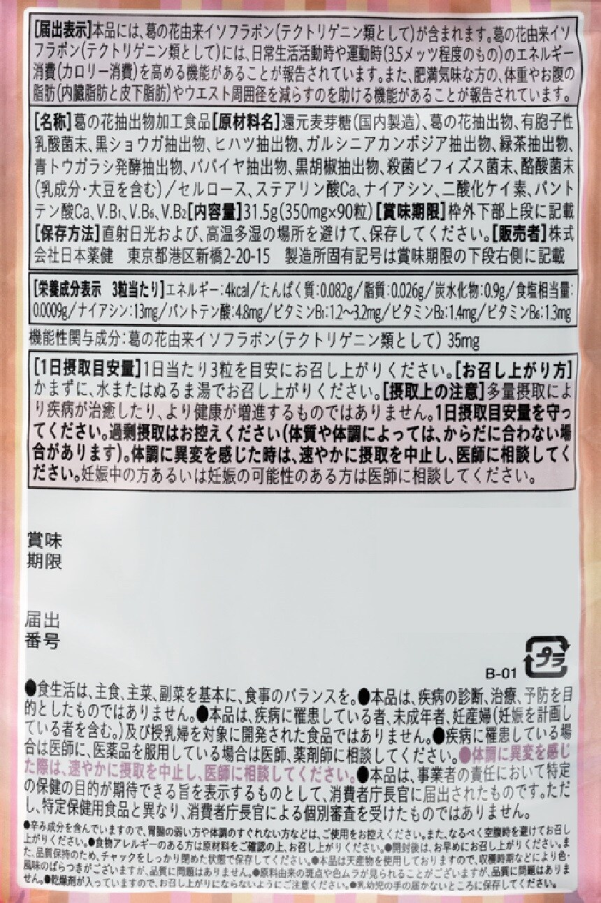 1.葛の花果実由来イソフラボン(テクトリゲニン類として)のWの機能をもつ機能性表示食品です。