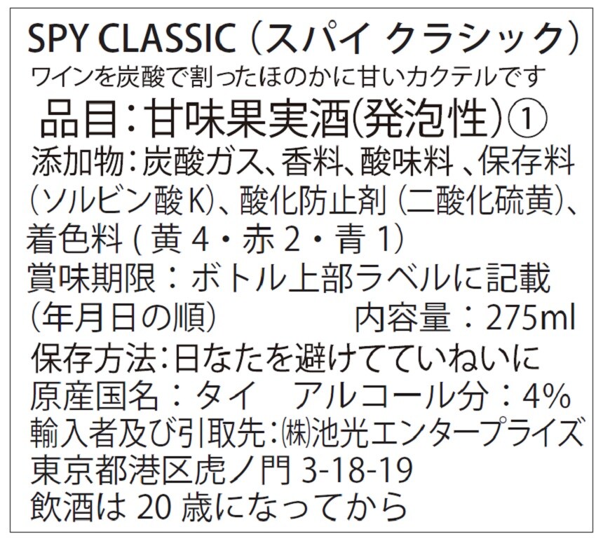 SPY(スパイ)シリーズはタイ産のワインをベースにした、フレッシュでフルーティーな味わいが楽しめるワインクーラー。
