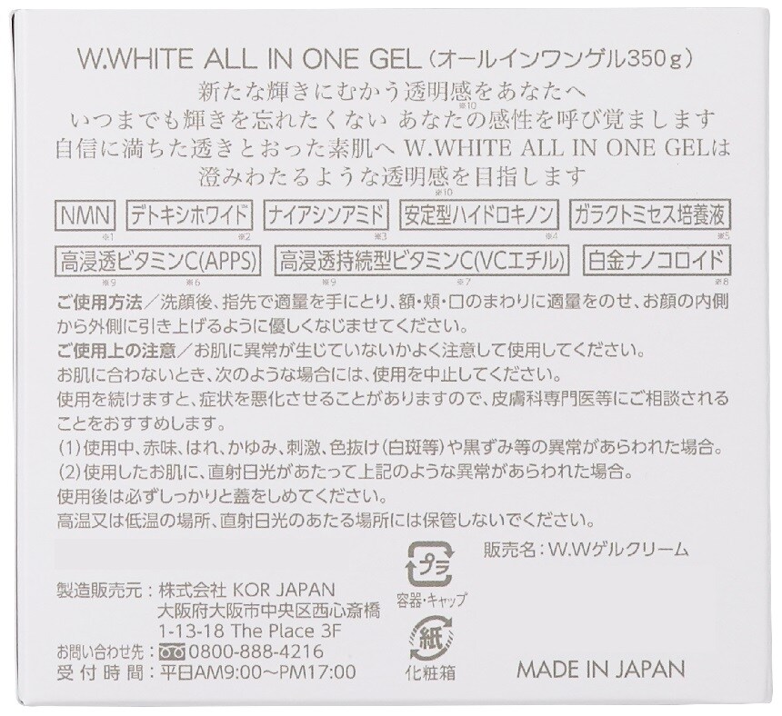 [3個]KOR JAPAN W. WHITE ALL IN ONE GEL 350g | <NMN配合>究極のシンプルケアで雪のような素肌へ