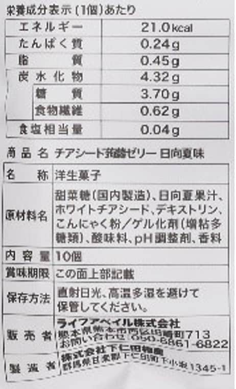 ・リフココ・チアシード蒟蒻ゼリー 日向夏味(宮崎県産果汁) 10個入×12袋 - 賞味期限