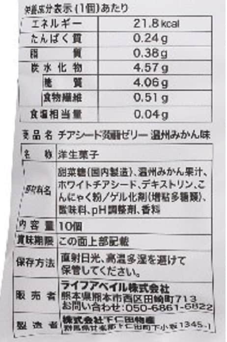 - ・リフココ・チアシード蒟蒻ゼリー 温州みかん味(九州産果汁) 10個入×12袋