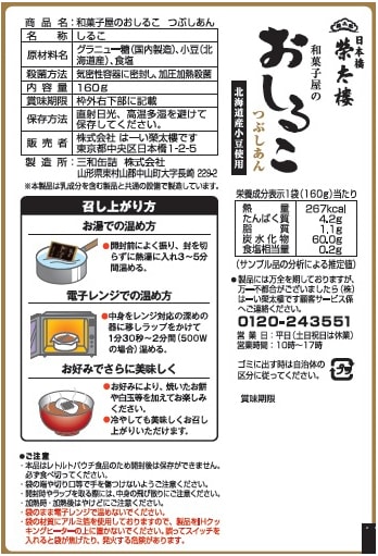 和菓子屋のおしるこをご家庭で手軽にお楽しみいただけます。