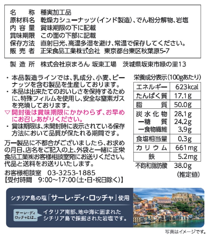 カシューナッツ本来の風味に香ばしさが加わり、味わい深い仕上がりとなっております。