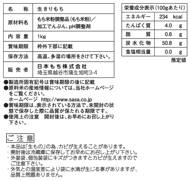 - 日本もち 純切り餅 シングルパック もち粉使用 1kg