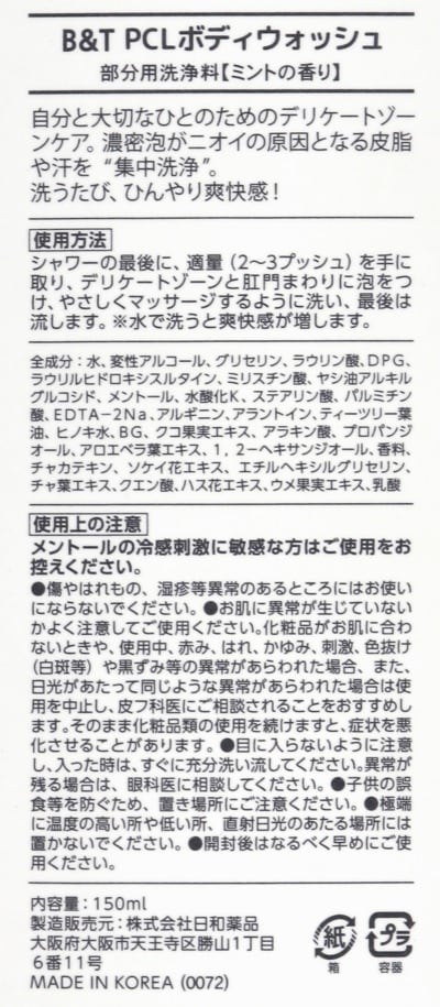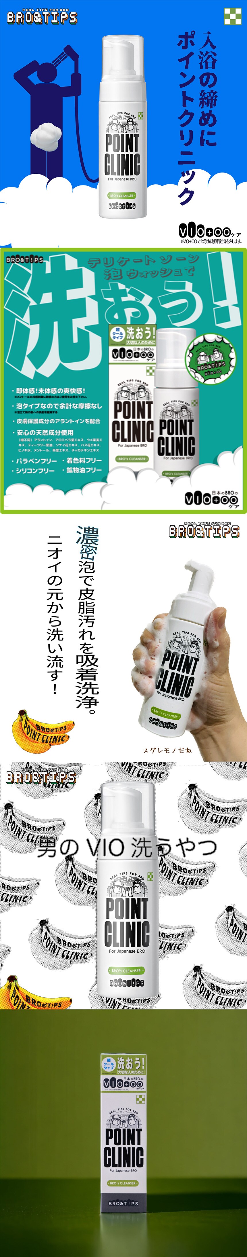 男のVIO洗うやつ!ポイントクリニック!韓国で累計11万越えの販売(2020年5月から2年)確かな実績を創出した製品。メントールを高配合し、更に複数の天然成分と合わせて初めてのクーリング感を実現(薬機法基準内MAX)。弱アルカリ性の洗浄力と、アラントインの皮膚保護成分でデリケートゾーンの汚れを徹底的に洗い流す。