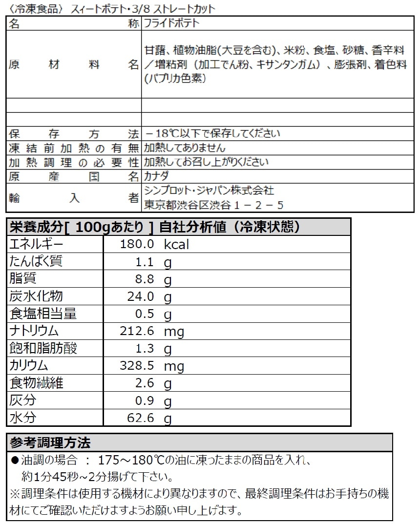 - スィートポテト 3/8" ストレートカット 1.134kg