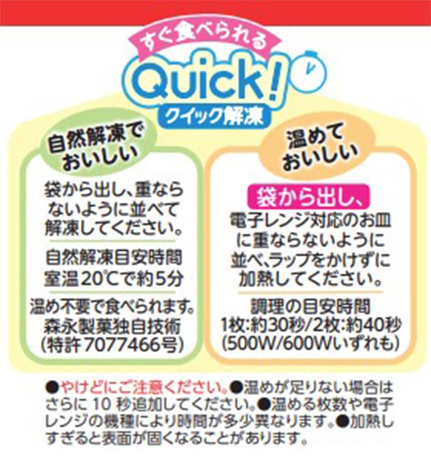 クイック解凍ですぐ食べられる「即食」「時短」で忙しい時間にもピッタリ。