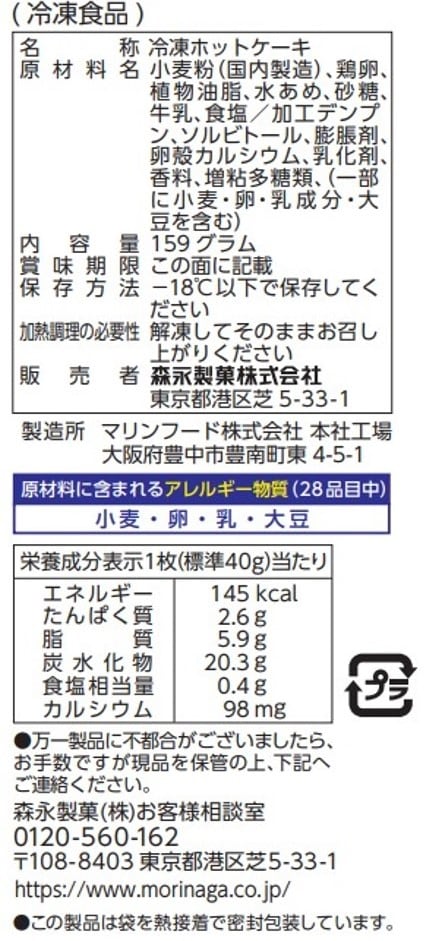 - 冷凍ホットケーキ 159g