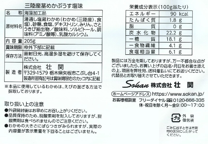- 三陸産茎めかぶ うす塩味BIGサイズ 205g