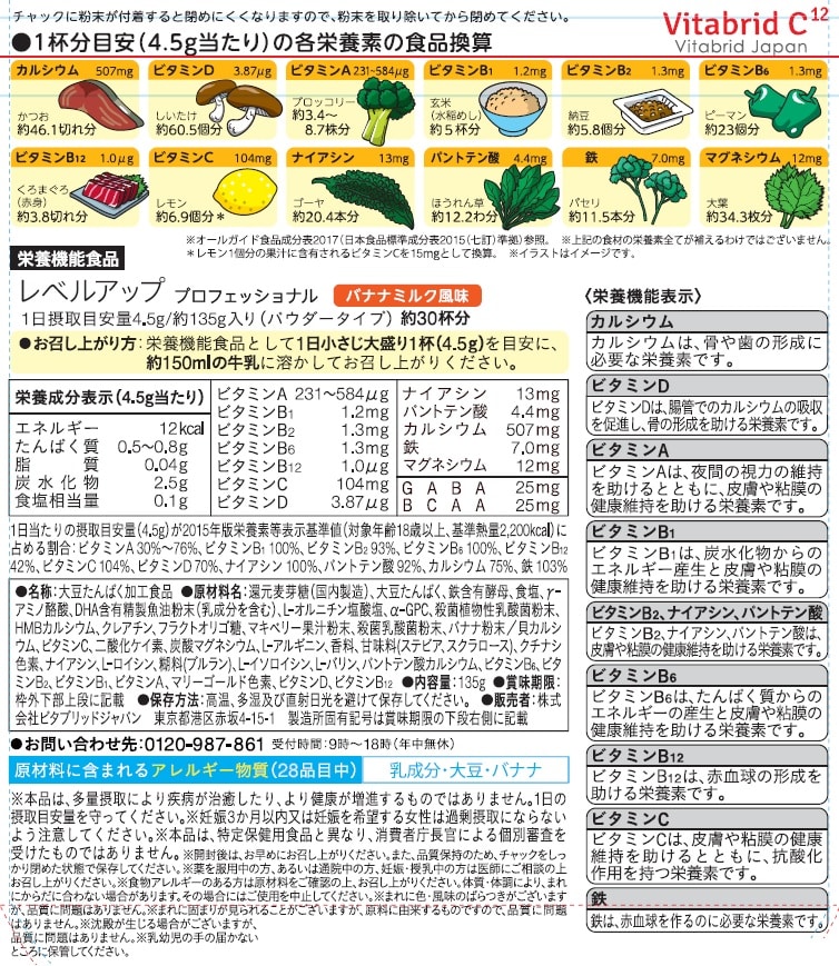 [4個]ビタブリッド ジャパン レベルアッププロフェッショナル バナナミルク味 135g
