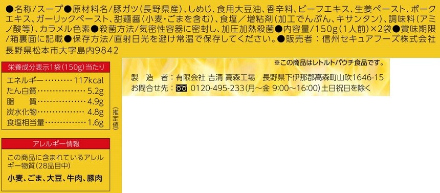 [10個]信州セキュアフーズ カラ!カラ!カラ!豚ガツスープ 150g×2袋入 | 赤唐辛子とハバネロを使用した激辛ガツスープ