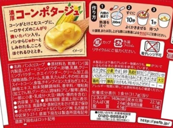 - ・じっくりコトコト こんがりパン 濃厚コーンポタージュ 31.7g×24食