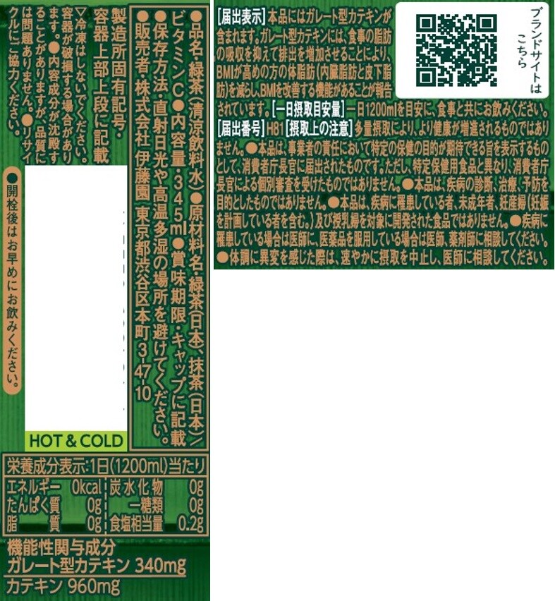 濃い茶専用にブレンドした国産茶葉を使用し、体脂肪を減らす機能があることが報告されている機能性関与成分のガレート型カテキンが340mg(※)含まれる抹茶入りの緑茶飲料です(国産茶葉100%)。