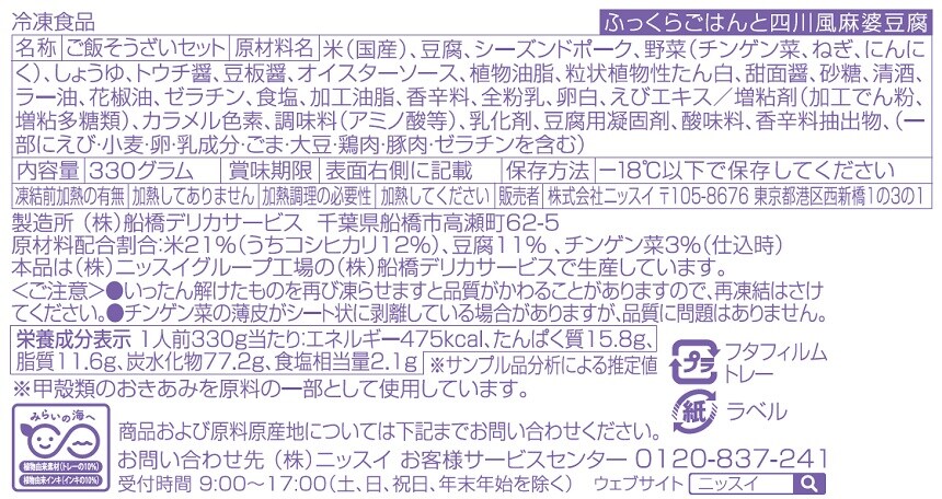 [12個]ニッスイ ふっくらごはんと四川風麻婆豆腐 330g | ごはんと四川風麻婆豆腐がセットになったワンプレート商品です。