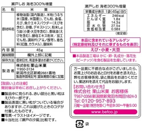 [10袋]栗山米菓 瀬戸しお 海老300%増量 45g | 超濃厚。最強海老味