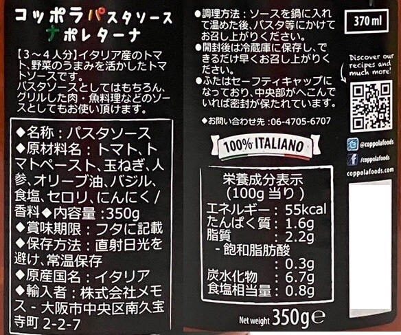 [12個]メモス コッポラ パスタソース ナポレターナ 350g | イタリア・ナポリの家庭で食べられる野菜の甘みと香りを活かしたトマト感を味わえるソースです。グルテンフリー。