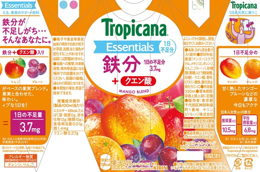 [2種計48本]キリンビバレッジ トロピカーナ エッセンシャルズ 鉄分 LL プリズマ 330ml / マルチビタミン LL プリズマ 330ml | 不足しがちな栄養を、手軽においしく補える果実飲料
