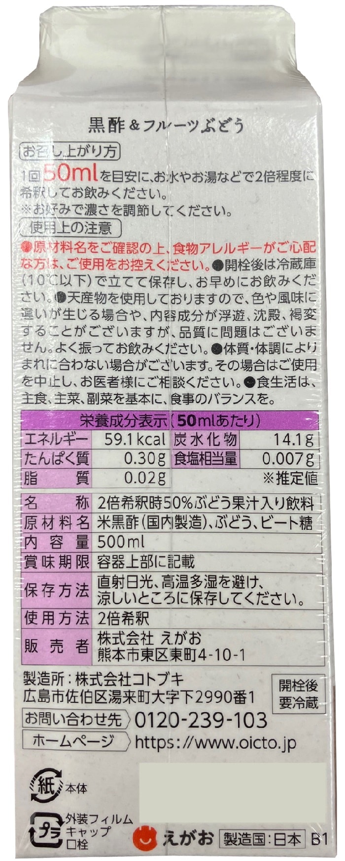 - 黒酢&フルーツ ぶどう 500ml