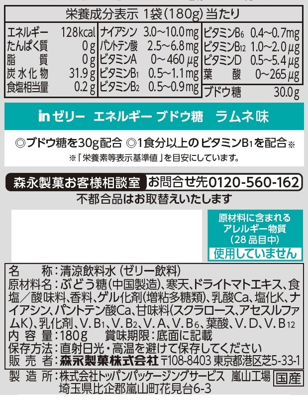 [60本]森永製菓 inゼリー エネルギーブドウ糖 180g | 考えるためのエネルギー補給に