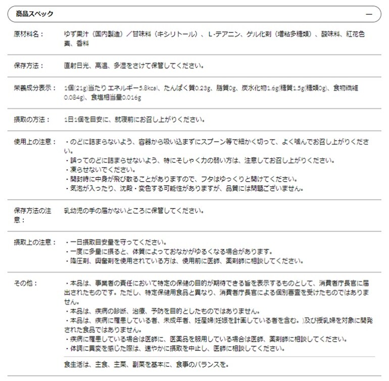 届出表示:本品にはL-テアニンが含まれています。 L-テアニンは、質の良い睡眠 (朝、目覚めた時の疲労感や眠気を軽減)をサポートすることが報告されています。