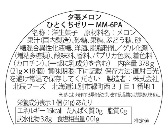 [計324個]北辰フーズ 夕張メロンひとくちゼリー 18個入 | 夕張メロンそのもののおいしさを閉じ込めた、食べやすいミニサイズの夕張メロンゼリーです。