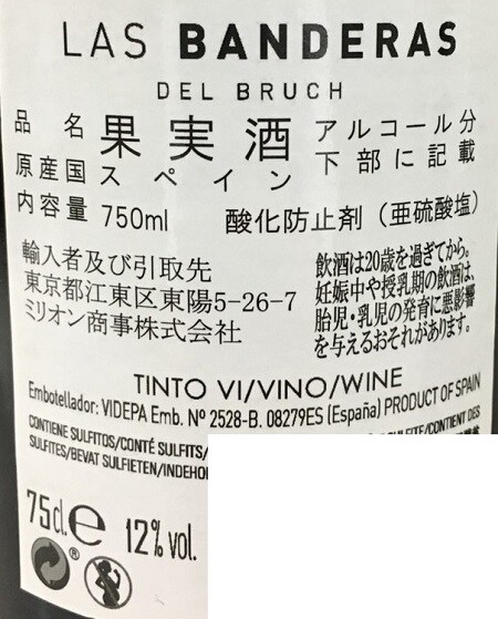 【ラス・バンデラス・ティント】ブドウ、出芽酵母、亜硫酸塩