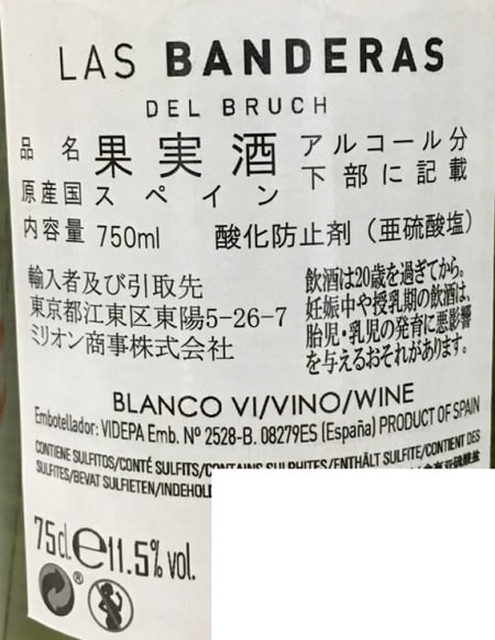【ラス・バンデラス・ブランコ】ブドウ、出芽酵母、亜硫酸塩